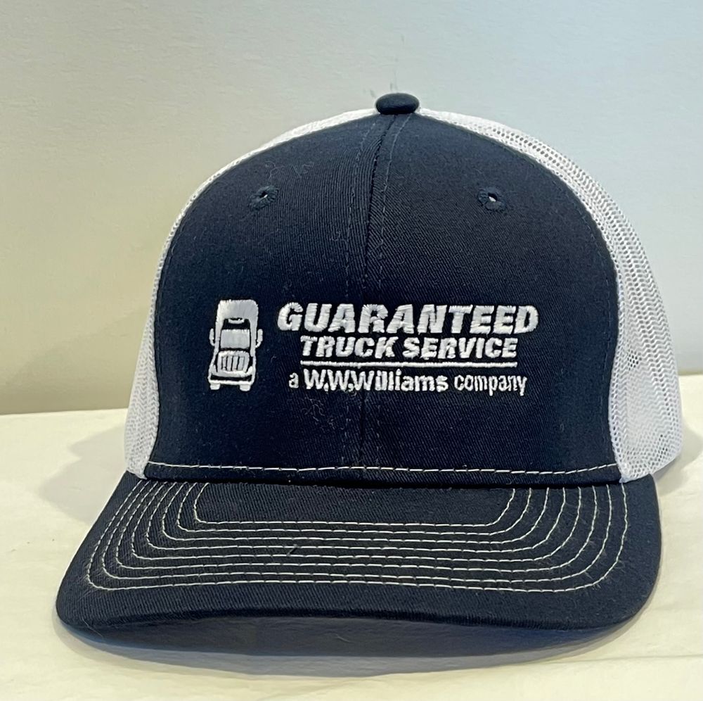 Navy and white GTS emboridered cottion twill mesh back hat.